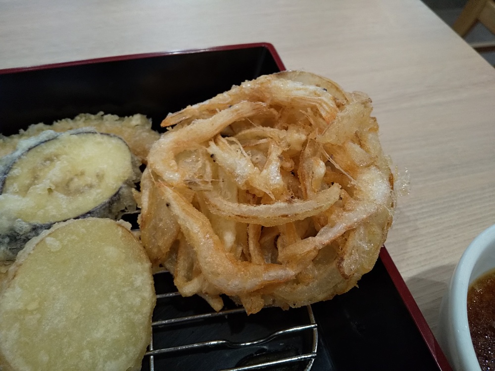 エビ、キス、野菜3品と白エビかき揚げが付いてきます。揚げたてをその都度、順に器に盛り付けてくれるので、まさにサックサクを食べられます!一堂に会してから写真を撮ろうと思いましたが、我慢できずに食べちゃいました。。