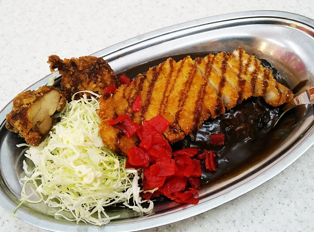 オーダーはもちろん、目玉のコラボメニュー「ロースかつ&から揚げカレー(中)」1,050円。