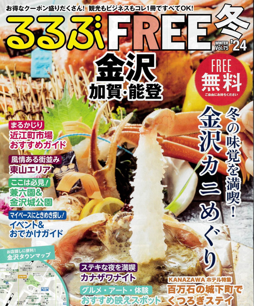 金沢の市街地をはじめ、県内の観光情報を網羅したフリーペーパー「るるぶFREE金沢加賀能登Vol.75(冬号)」が発刊されました!
