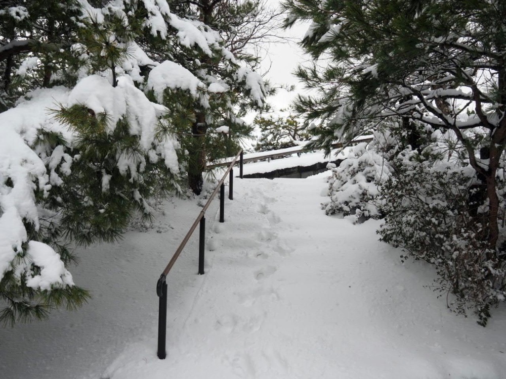 展望台へと続く道。さすがに積雪が多いですね。