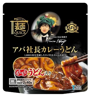 続いてアパ社長カレーうどん。麺のモチモチ感と濃厚なカレーが絡み合うかなり食べ応えがある印象。香りとコクを重視しているので、うどんが美味しい。麺QUICKとのコラボ商品。