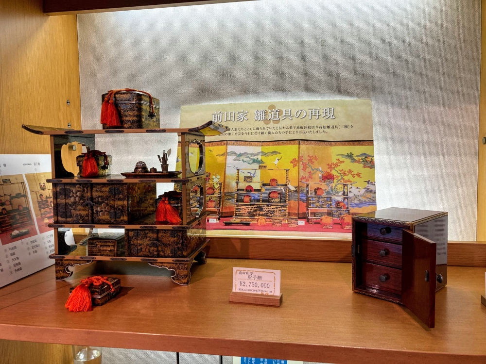 3階が加賀蒔絵・茶道具がならび、見るだけでも文化にふれることができます。