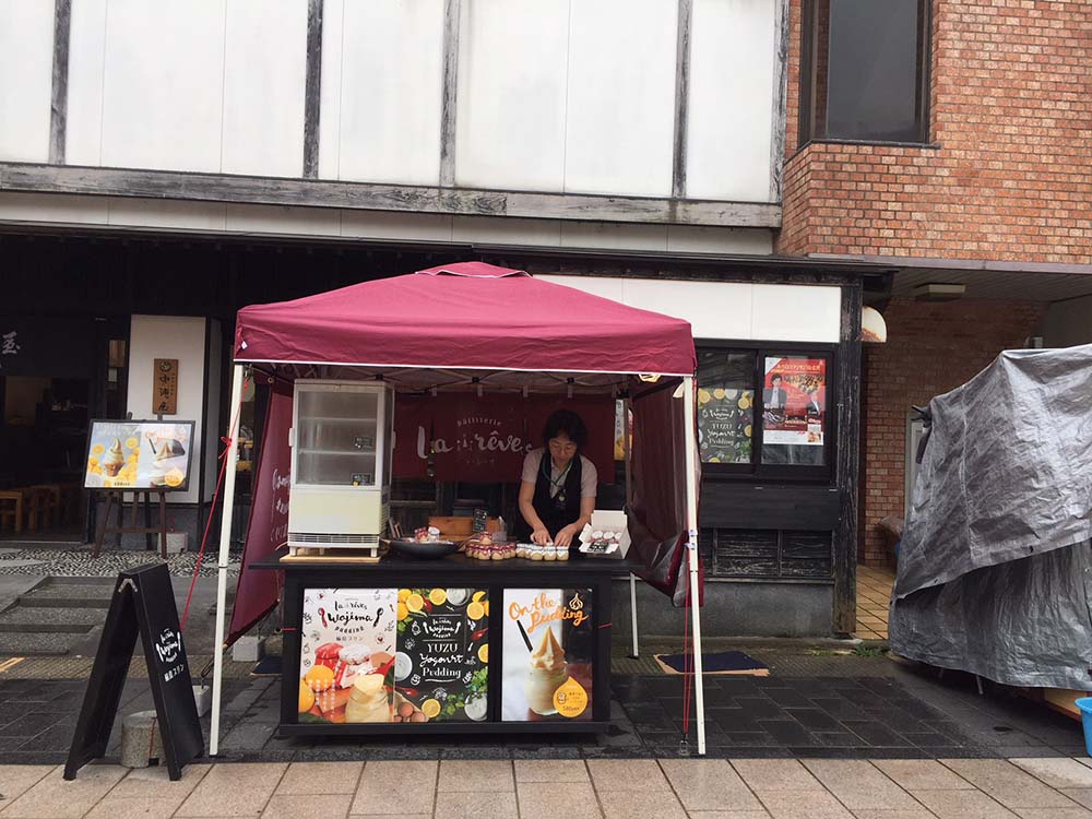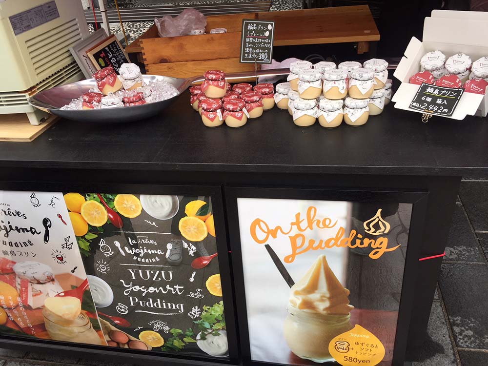 今年の春からは店頭でプリンの販売スペースもオープン。可愛い小瓶に入った「輪島プリン」380円は、プレーンとゆずぐるとの2種類。能登の卵と牛乳を使った濃厚なプリンです。お土産にもおすすめですよ。